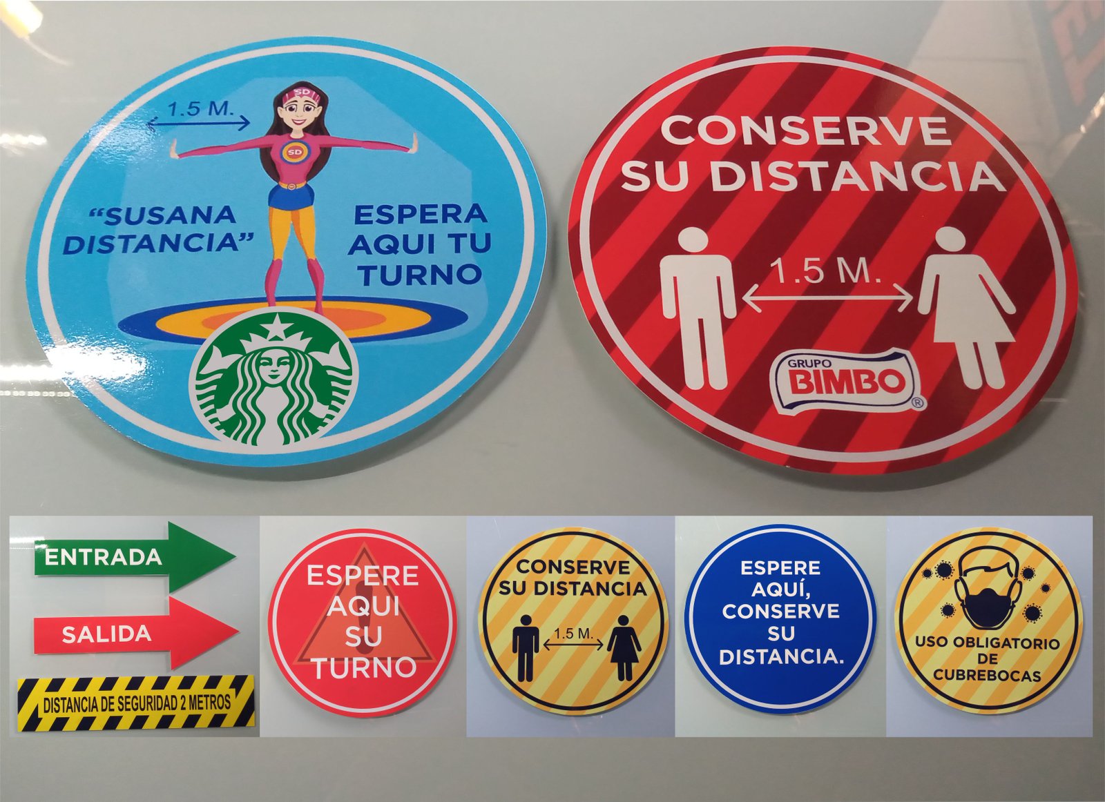 Gráficos para piso (trafico pesado) vinilos de seguridad de sana distancia para evitar contagios en zonas de espera, negocios y comercios. Puede elegir nuestros modelos o enviarnos su propio diseño en la medida que requiera,