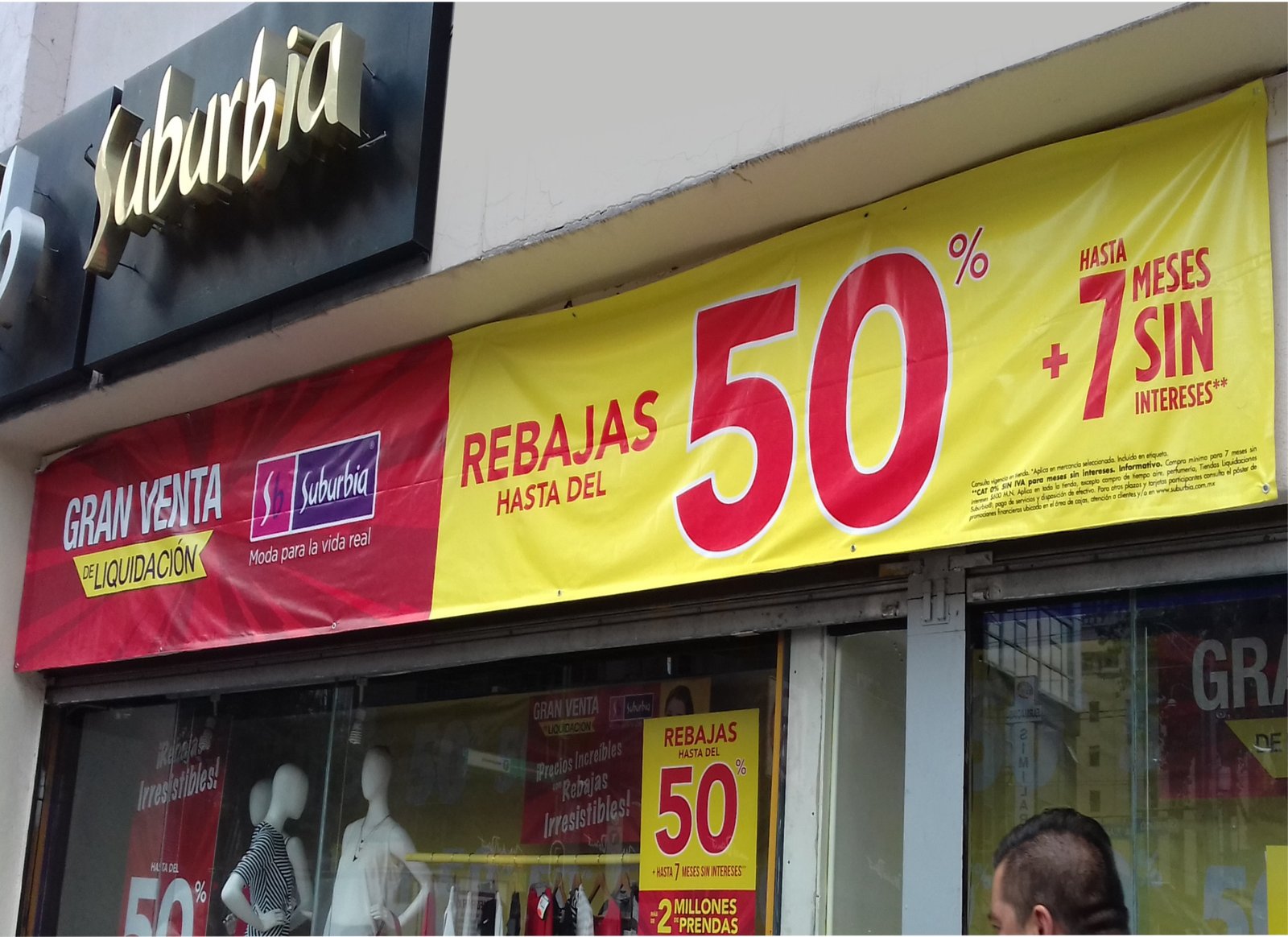 Con doblez y ojillos para colgar en exteriores e interiores, impresa en gran formato la más común y recomendable para publicidad en anuncios o espectaculares para visualizar de lejos.