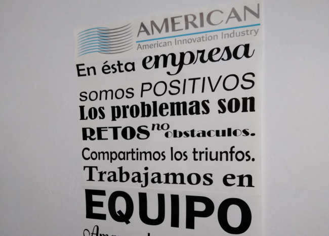 Propuesta decorativo frases motivadoras en pared, con la marca de su empresa.