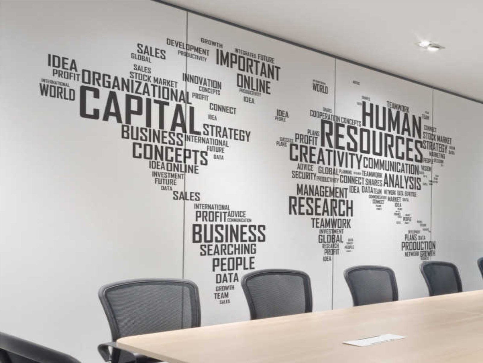 Propuesta decorativo frases motivadoras en pared, con la marca de su empresa.